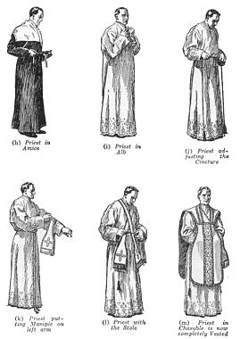 Secular fashion changed, but the Church clung to the old style. Thus it was that garments once common to all, presently became the privileged dress of the clergy. Faith then saw in each particular vestment a symbol relating to the Passion of Our Lord, and a reminder of some Christian duty.