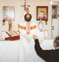 priest gives his first blessing.